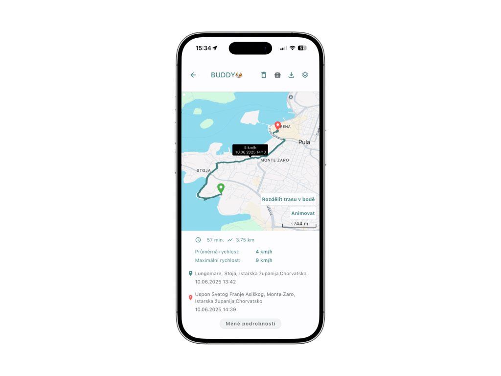 Sledujte vaše výlety a procházky, podívejte se, co všechno jste se svým čtyřnohým parťákem zvládli. Udržujte se ve skvělé kondici. Historii tras pro vás v aplikaci uchováváme po dobu jednoho roku.